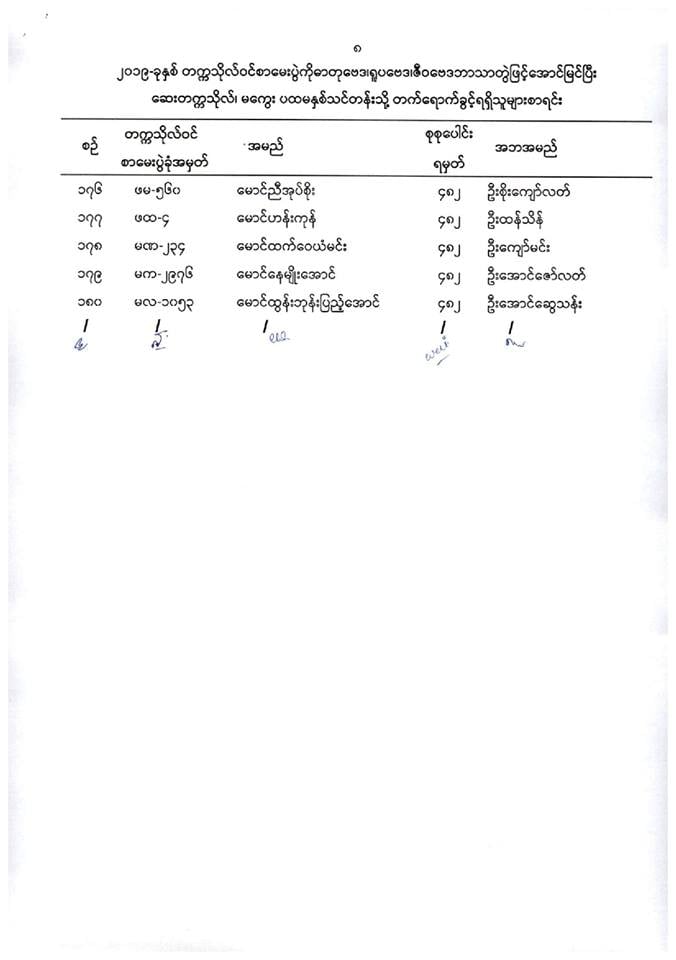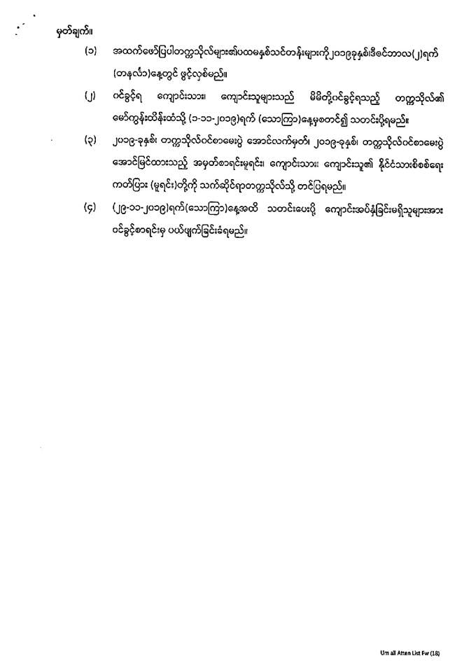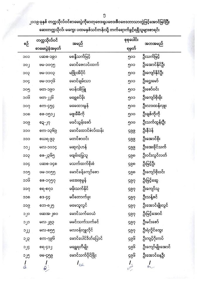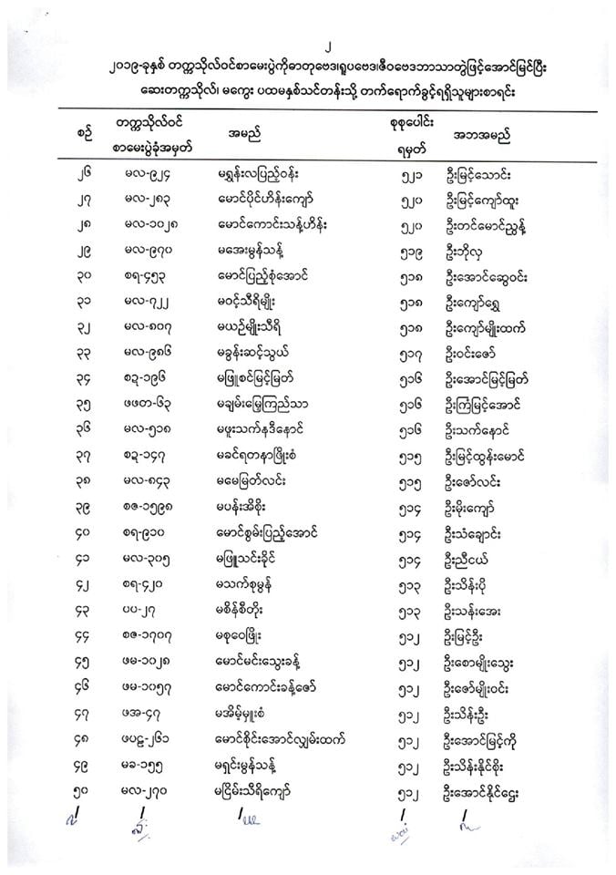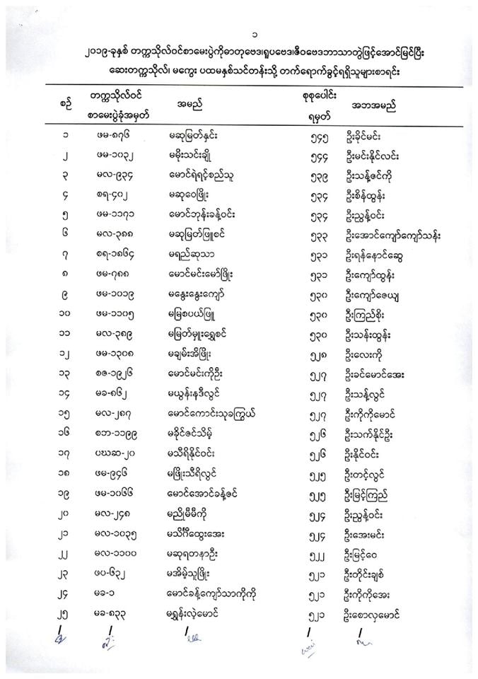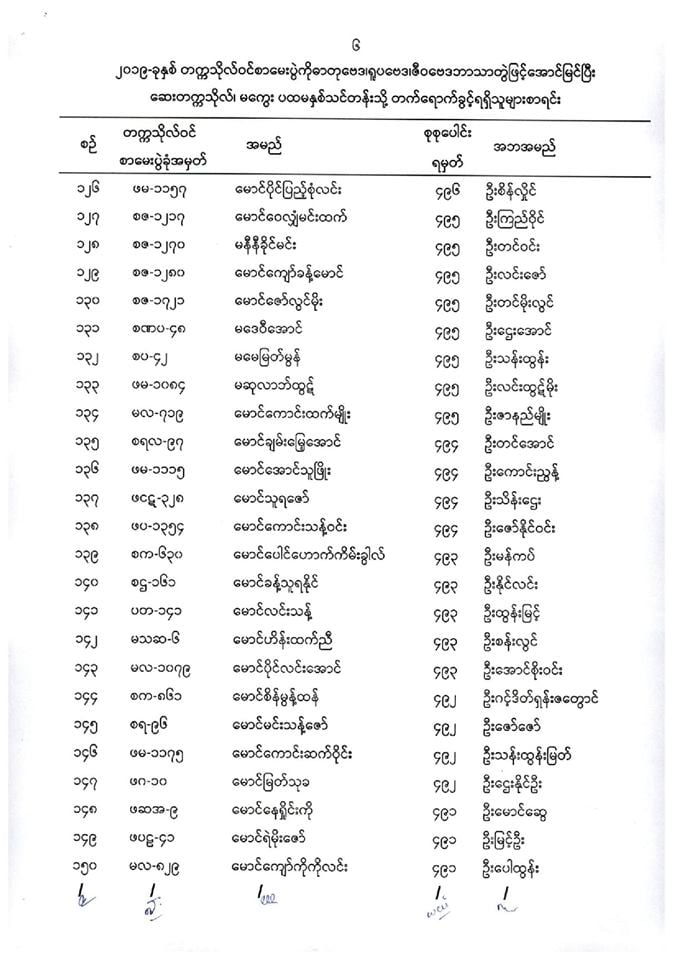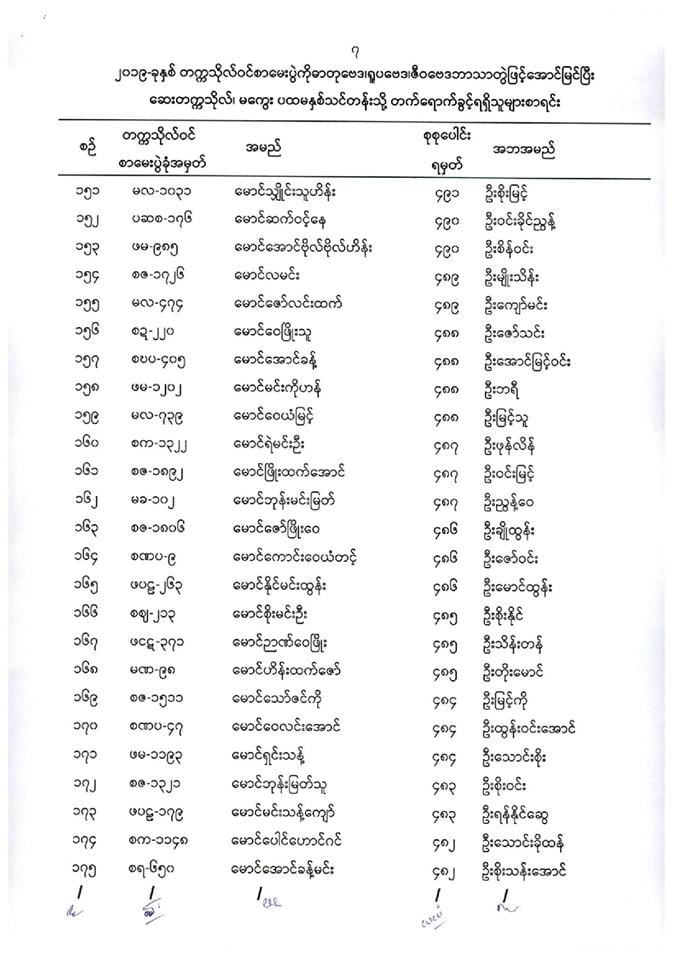 ဆေးတက္ကသိုလ်မကွေး တက်ခွင့်ရစာရင်း.....